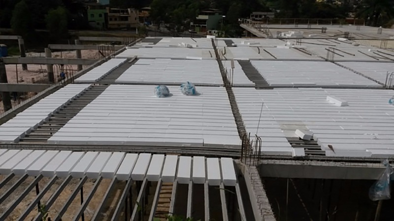 São chamadas de pré-moldadas protendidas porque sua montagem é feita através de viguetas de concreto pré-moldadas, espaçadas por lajotas cerâmicas ou E.P.S. (isopor) e capeadas com uma camada de concreto.